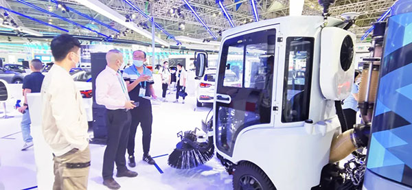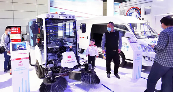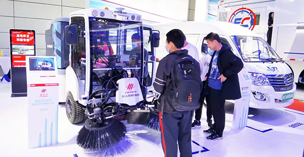 乘着智电化、数字化变革的东风,“福龙马”牌纯电动无人驾驶扫路机在本届展出新风貌,引来展会现场观众驻足咨询。
