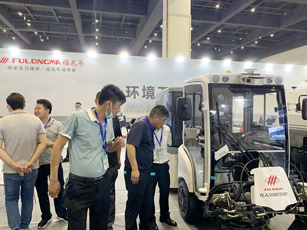 路演环节,“福龙马”牌高速洗扫车进行现场作业演练,其优异的作业性能及良好的作业效果引来现场众多观众驻足观看。
