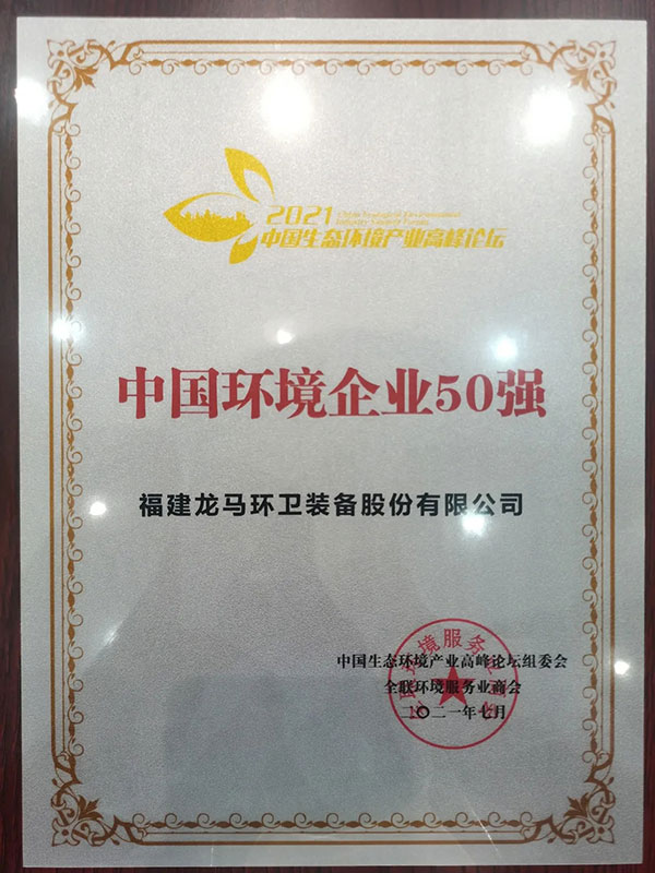 论坛上,全国工商联环境商会发布了“2021中国环境企业50强”榜单,并对上榜企业授牌。据悉,该榜单以企业申报为基础,以公正公开为原则,以真实数据为依据,结合上规模环境企业调研,按照2020年度营业收入总额降序排列产生,在环境产业界具有较高的公信力和认可度。其中,龙马环卫近三年排名屡创新高,充分证明了权威机构对公司创新环卫装备,拓展环卫服务所展现的实力与业绩的认可。