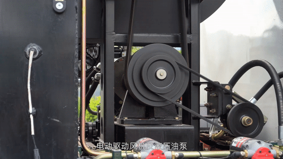 电机驱动风机及液压油泵,电机与风机之间的传动设置设有自动离合器,可保证电机空载起动和停机时与风机的自动脱离,简化了操作,降低对电机的冲击,提高了电机的工作可靠性和使用寿命。