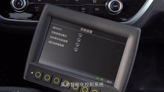 具有多种安全报警装置:清水箱低水位、作业提示、电机故障提示、控制器通讯故障报警、液压油泄漏报警、垃圾箱倾翻,复位及后门开闭安全报警等装置。