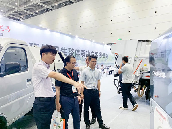 展会现场,中国城市环境卫生协会副会长兼秘书长刘晶昊一行莅临龙马环卫展位,对“福龙马”牌环卫装备产品工艺性、质量可靠性予以了高度赞许。