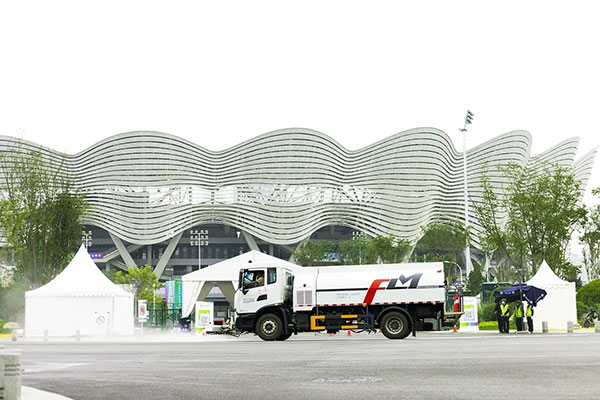 全运会是国内水平最高、规模最大的综合性运动会。作为本届全运会环境卫生保障单位之一,龙马环卫始终牢记企业责任与担当。本次全运会期间,当地共出动包括压缩式垃圾车、墙面清洗车、高压清洗车、洒水车、洗扫车等环卫装备26台,围绕全运会场馆等重点区域实施高质量、高水平、高要求的清洁保障作业;其中洗扫车和高压清洗车负责此次全运会主场馆及周边清洁保障工作,旨在确保全运会期间的高质量环卫水平。