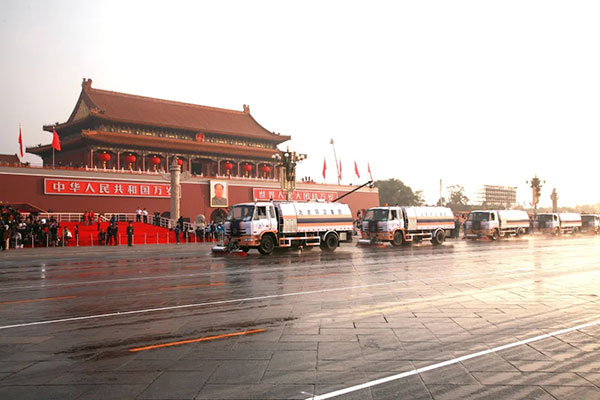 2009年,国庆60周年阅兵,“福龙马”牌环卫装备为阅兵场地做清洁保障服务