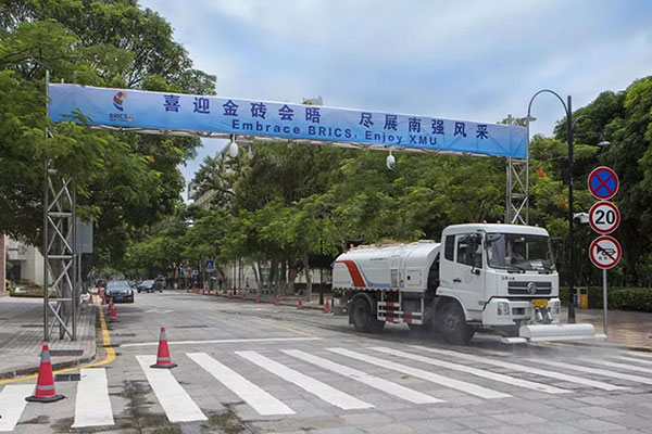 2017年,厦门金砖会议,“福龙马”牌高压清洗车做道路保洁保障服务工作
