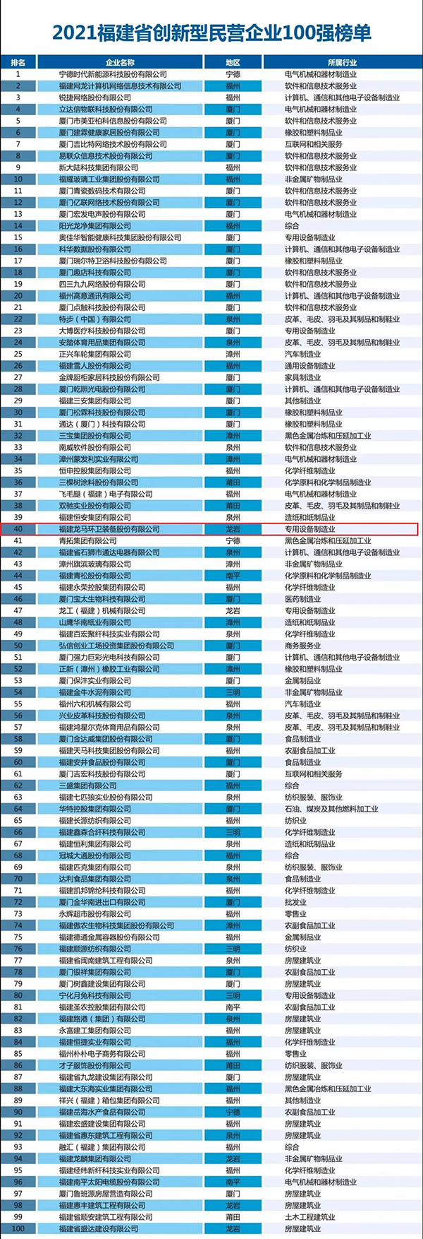 会上,省委统战部副部长、省工商联党组书记李家荣发布了2021福建省民营企业100强榜单,其中龙马环卫同时获得“2021福建省民营企业100强(排名第68位)”“2021福建省创新型民营企业100强(排名第40位)”“2021福建省民营企业制造业50强(排名第31位)”三项殊荣。上述荣誉的获得,体现了社会各界对龙马环卫综合实力、环卫装备制造实力和技术创新实力的充分肯定和高度认可。今后,龙马环卫将继续以习近平总书记“绿水青山就是金山银山”的生态文明理念为指引,进一步加大研发投入、提升工艺水平、拓展产业链条、聚焦主责主业,努力发展成为环境卫生整体解决方案领先者,积极为中国环境卫生事业高质量发展添砖加瓦。