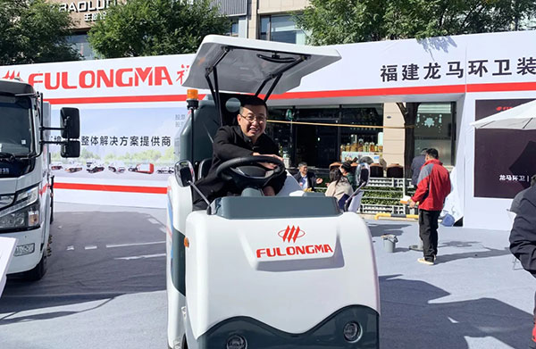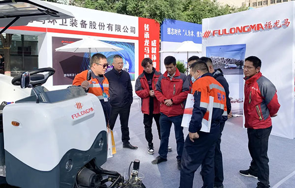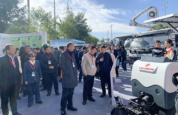 展会现场,“福龙马”牌系列环卫装备吸引众多与会领导及嘉宾驻足。