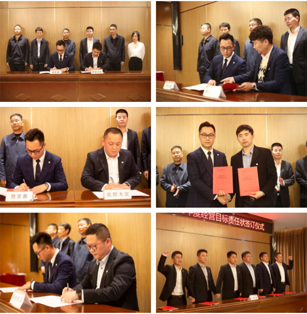 各大区、区域总监分为两组,与公司签订了2022年度经营目标责任状。