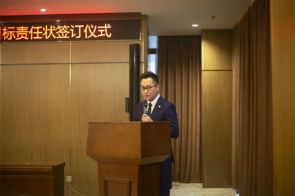 仪式由装备事业部副总经理、销售公司总经理查文鑫主持。查文鑫提到,本次组织签订经营目标责任状,目的是增强大家的市场竞争意识、责任意识和安全意识,在公司内部逐步建立起与市场变化相适应的竞争机制。通过这种形式,层层分解全年工作目标,传递工作压力,做到“千斤重担大家挑,人人头上有指标”,使大家真正把指标作为工作目标,把压力作为工作动力,把责任作为工作使命,确保公司全年工作顺利开展。