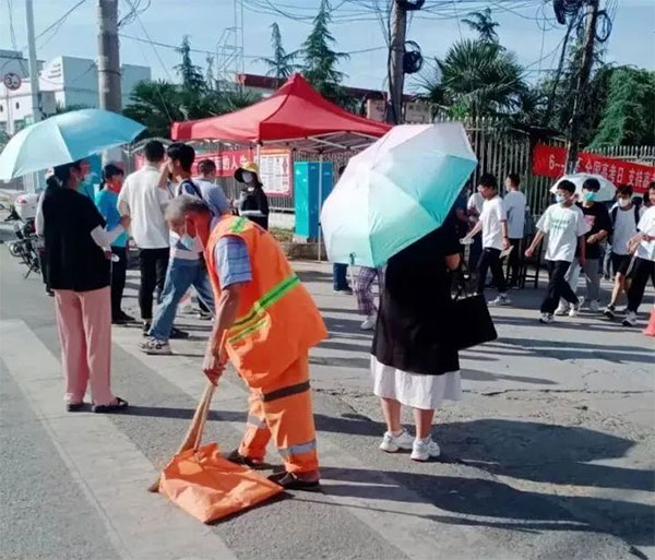针对高考期间考场周边人群密集、车流量大以及考场周边环境复杂等情况,内乡项目安排机扫车辆、高压冲洗车在考生到校前,不影响学生及家长交通的前提下,提前做好道路降温除尘工作,在考点道路封闭前清扫完毕。考试开始后,全部改成人工清洁,在原有人员基础上,再抽调保洁人员到各大考点,并明确责任路段,及时捡拾废纸、白色垃圾等。考试结束后,及时组织车辆、人员对考点环境卫生再次进行集中清理。