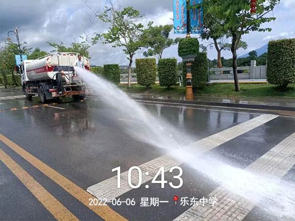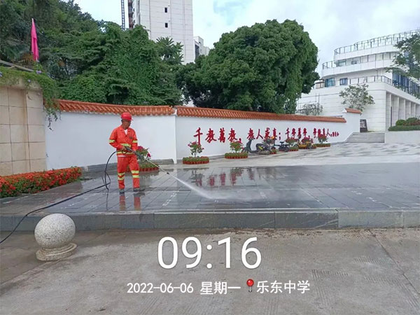 6月6日上午,公司安排水车在乐东中学校门口、花丛及人行横道进行全面冲洗及人工擦拭,以洁净的面貌迎接高考的到来。在乐东思源实验高中安排养护车和小高压车在校门口及学校周边路面进行冲洗,加强和保障校园周边的卫生质量。