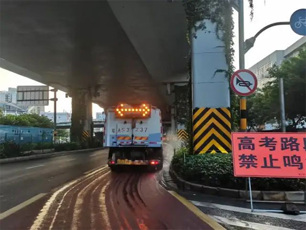 高考前夕,厦门龙环组织专人专队对考场周边进行了全面清洗和保洁,加强保洁力度,最大程度确保考场周边环卫设施整洁完好、环境干净整洁。