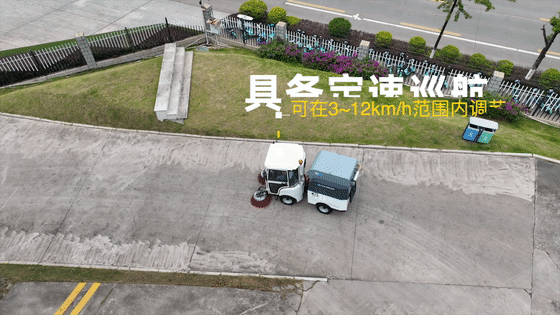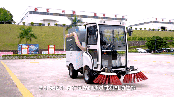整机宽度仅1280mm,狭窄的地方也可进入,最小转弯半径仅2.5m,能在不到6m宽的路面上轻松掉头,能围绕一棵树进行360°圆周清扫。