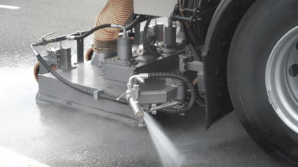 后置的深度保洁吸嘴通过液压马达驱动高压喷水杆旋转,实现超高压旋转水射流对路面进行反复的冲洗,并将污水回收至垃圾箱,道路积垢、板结、油污等污染物可有效处理,转弯作业也无死角、水痕,还道路以本色。