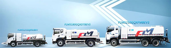 “福龙马”牌纯电动洒水/清洗车系列产品,具有独立的高、低压两套清洗系统。高压清洗系统包括前清洗喷水架、单点清淤、右侧清洗护栏和手持喷枪及卷盘等作业装置,低压冲洗系统包括前鸭嘴冲洗、中部柱状对冲、后洒水、后高喷水枪等作业装置。