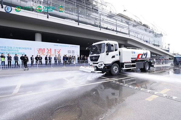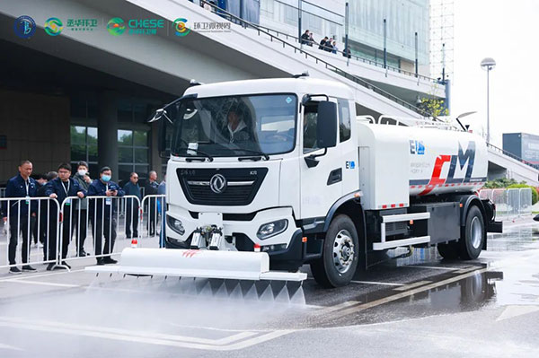 在展会上,福龙马集团作为环卫领域的领军企业,携旗下多款纯电动和氢燃料系列产品亮相。其中,纯电动高压清洗车在路演环节进行了精彩的演示,展现了其优越的路面清洁性能。该车采用新能源驱动,符合国家节能减排的战略要求,受到了在场观众和行业友商的一致好评。同时,集团还展出了纯电动小型洗扫车、5吨洗扫车、纯电动餐厨垃圾车、氢燃料洗扫车及氢燃料清洗车等系列产品,体现了集团在清洁能源方面的成熟技术和创新能力。
