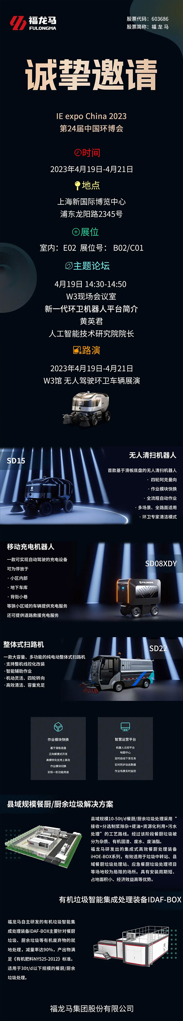 中国环博会 | 叮~请开启您的专属邀请函 2023-04-18 515 分享 上一条 福龙马集团展示清洁能源装备 助力华东六省一市环卫博览会2023-03-31 下一条 硬核实力 | 超高效静音纯电动洗扫车洁净效率双在线2025-07-11