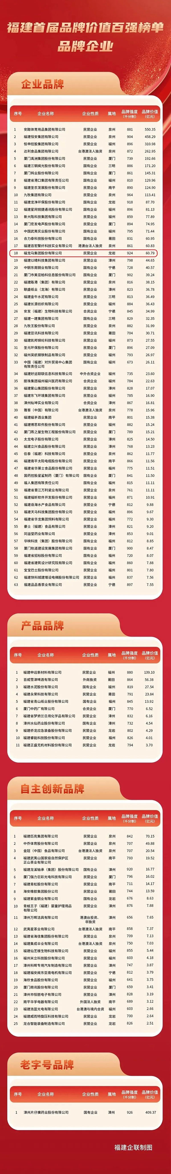 喜报 | 福龙马集团上榜福建首届品牌价值百强榜单