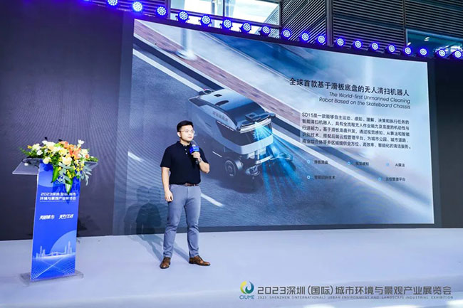 展会期间,福龙马城服机器人板块在现场开设了专场推介会,向各界领导和专家介绍了其在城市服务机器人领域的最新科技成果SD15无人清扫机器人和SD22B智能扫路机,以及公司产品落地场景案例,为观众全方位展示了城服机器人产品的专研技术、全面功能和实际应用。