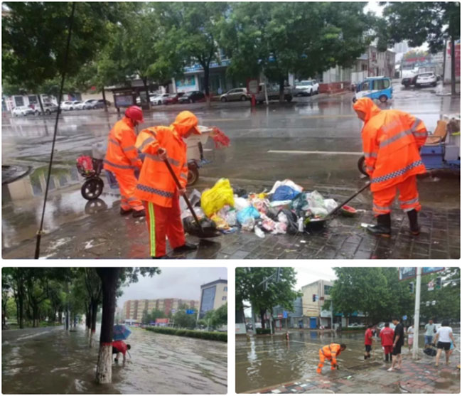 在暴雨来临前,京津冀地区各项目公司提前进入临战状态,积极部署防汛工作预案,迅速组建防汛应急小组,备好防汛用具,加强24小时巡查值守,紧盯防汛重点部位,落实落细各项防汛措施,均有效协助当地主管部门在要求时限内完成市容市貌、公共秩序恢复工作。