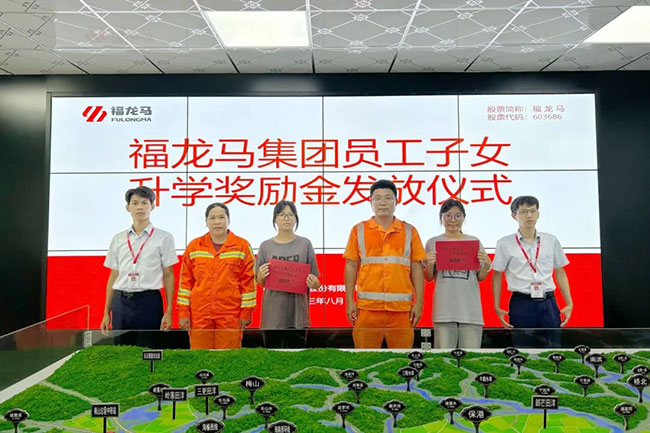 福龙马集团全国各分、子公司同期开展员工子女升学奖励金发放活动,着力营造关爱员工子女、关心重视教育、积极奖学助学的浓厚氛围。