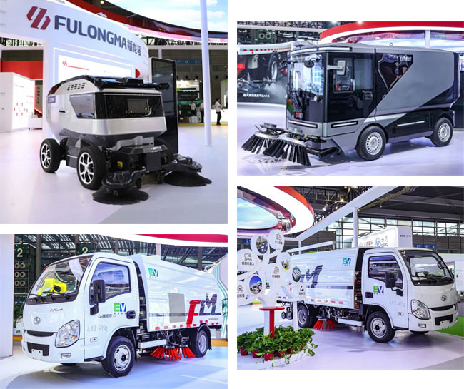 福龙马携全球首款基于滑板底盘的无人清扫机器人SD15、行业领先的辅助驾驶智能扫路机SD22,以及小型纯电动扫路车、小型纯电动洗扫车等最新科技成果亮相,吸引了大批观众驻足围观。