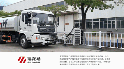 “福龙马”牌FLM5182GSSDF6洒水车是一款多功能洒水车,除标配低压洒水动作外,还加装了新款全液压式前置护栏清洗装置。实现普通的路面洒水作业的同时,也可进行道路护栏滚扫清洗。