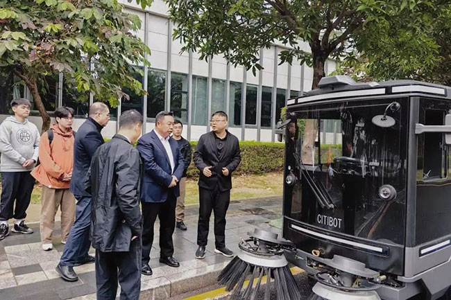 在思明区宜兰路,福龙马城服机器人科技有限公司总经理章林磊与福龙马人工智能技术研究院院长黄英君博士向徐文龙一行展示了FLMSD22B智能扫路机的作业效果,并详细介绍了该产品的各项功能。在试驾过程中,徐文龙对FLMSD22B的清洁效率、智能辅助驾驶系统、精准贴边贴线功能以及停车避障系统的表现表示高度认可,并对这款高科技产品给予了高度评价。