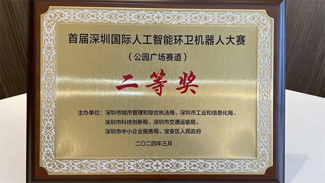 值得一提的是,在刚刚结束的深圳国际环卫机器人大赛中,SD15全流程无人清扫机器人脱颖而出,荣获公园广场赛道二等奖的优异成绩。
