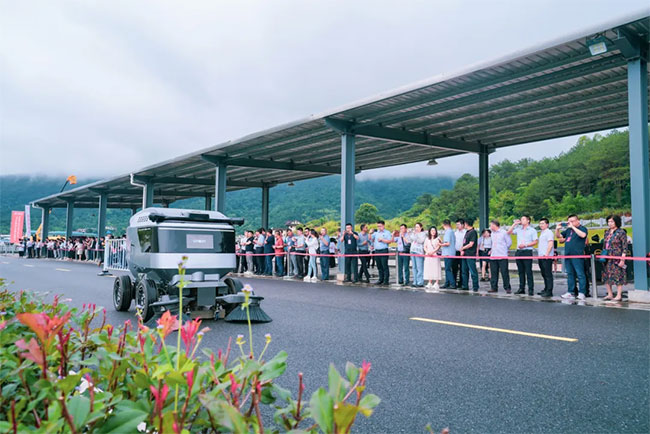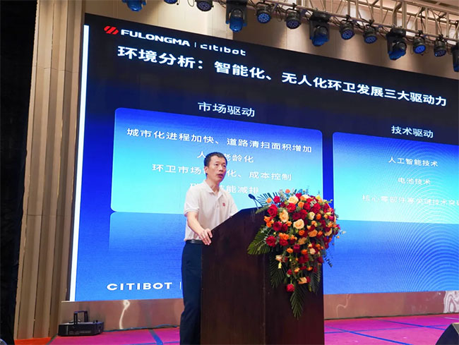 福龙马集团人工智能首席技术官黄英君博士在推介“人工智能+环卫”解决方案与产品环节中表示,福龙马集团专注于城市服务机器人产品的研发和数智化运营解决方案的构建,目前已完成环卫全场景AI应用的布局与技术储备,能够有效提升作业效率、降低运营成本。