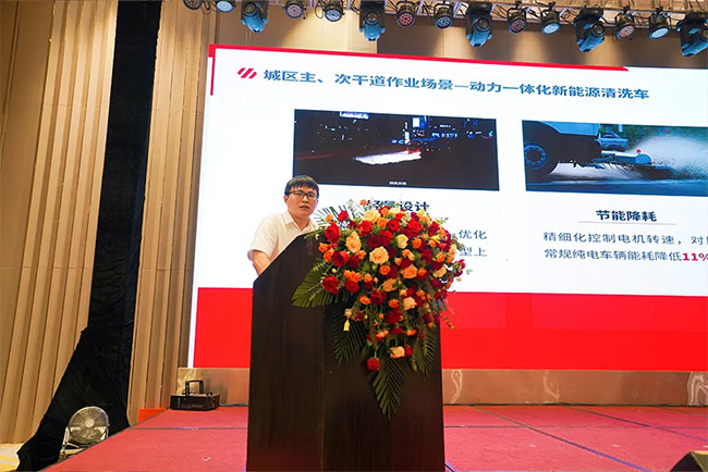 中国城市环境卫生协会副会长兼秘书长刘晶昊在致辞中充分肯定了福龙马集团在引领环卫行业高质量发展方面所作出的突出贡献,并就中国环卫行业后续发展发表前瞻性、建设性意见建议。随后,他向与会人员详细解读了公用领域设备更新及电动化政策。