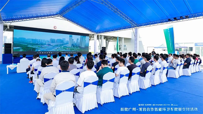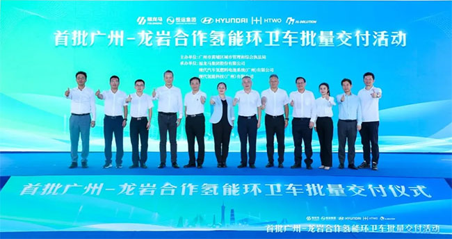 6月12日下午,首批广州龙岩合作氢能环卫车批量交付活动在广州市黄埔区隆重举行。广州市城管局二级巡视员何正清,龙岩高新区(经开区)党工委书记、管委会主任袁静,黄埔区人民政府党组成员、副区长黎信坤,广州市黄埔区城管局局长吴其东,现代汽车集团中国区总裁李赫埈,广州恒运企业集团股份有限公司总经理周水良,开云集团官网开云(中国)总裁张西泠,广州市黄埔区城管局、广州恒运集团、现代汽车集团、福龙马集团职工代表,共计100余人参加此次活动。