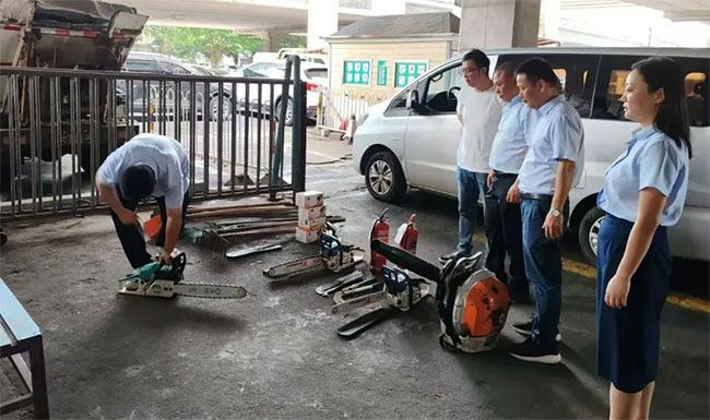 福龙马海口公司组织了积极应对台风“摩羯”的工作部署会议,成立防台风应急工作领导小组,确保近500名员工随时待命,保障道路畅通,各班点检查和维护应急设施设备,确保设备稳定运转,同时优先处理清运存量垃圾,防止风雨期间垃圾积压,并向环卫工人强调要注意作业安全。