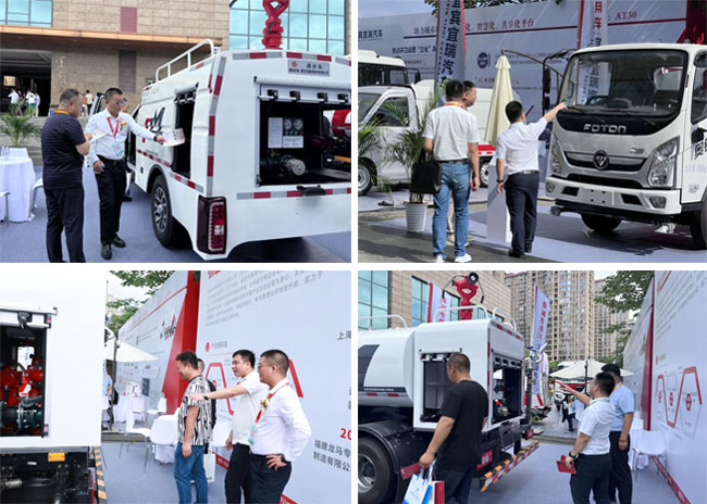 本次展会,福龙马集团携FLMSD15无人清扫机器人、FLM5060TPSDG6大流量排水抢险车、FLM5040GSSOP6远程供排水抢险车和FLM5090GSSFA6消防洒水车亮相,吸引众多观众驻足了解。