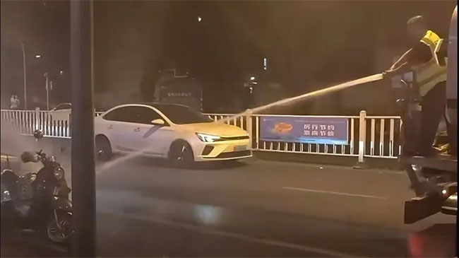 突发火情 | 路遇群众车辆自燃,福龙马清洗车化身“及时雨”