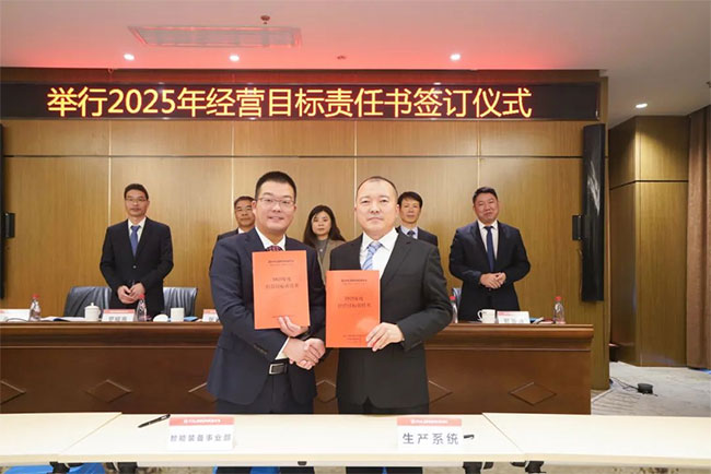 会议期间,智能装备事业部领导班子分别与各部门、区域签订了2025年经营目标责任书。