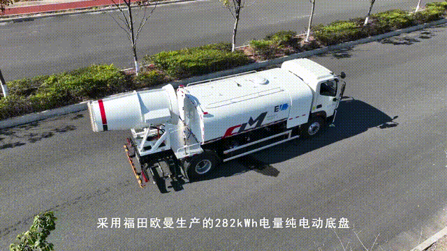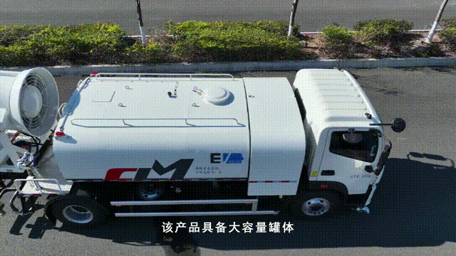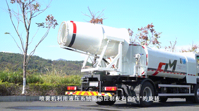 国内首创单一电机驱动上装作业的技术路线,通过二合一控制器控制洒水泵电机和风机电机实现雾炮喷雾流量和风量的无极调节,其能耗降低20%、噪声降低4dB。