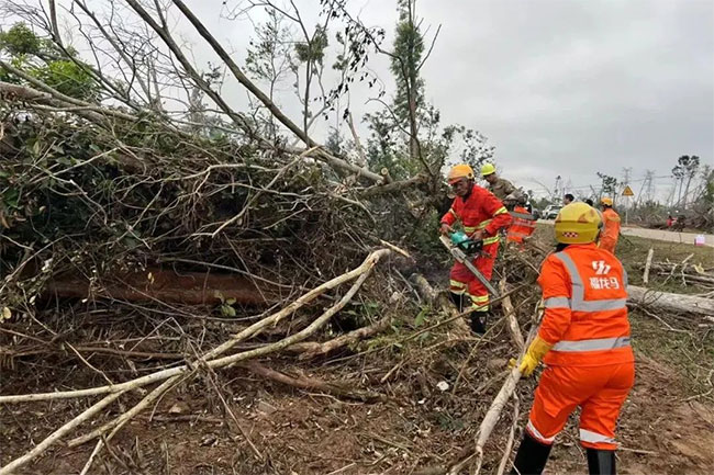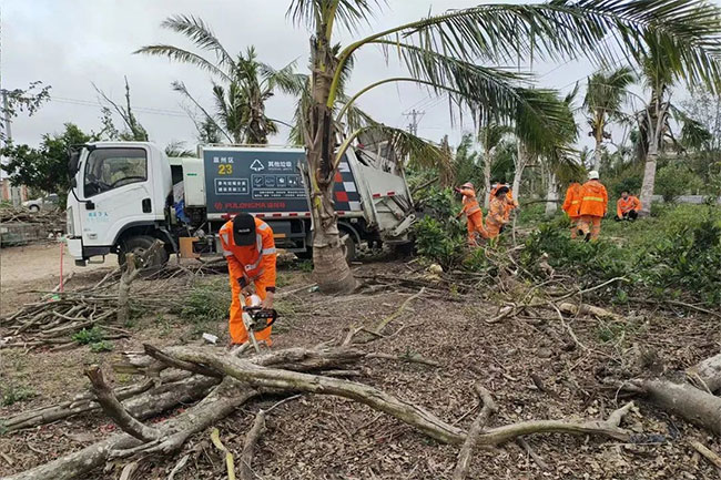 2024年9月,超级台风“摩羯”对文昌市造成重创,大量林木倾倒,交通、通信等基础设施受损严重。经过紧急重建,文昌已恢复正常生产生活秩序,但在农村地区还有部分公路两旁的倒伏林木尚未清理,树木枯萎后不仅容易干燥起火,还可能对沿线的电线等基础设施造成损坏。新春伊始,福龙马海口、三亚、琼海项目公司积极响应海南省委、省住建厅号召,组建应急抢险队驰援文昌,采用“机械清障+人工攻坚”模式,高效清理倒伏树木,助力城市恢复。