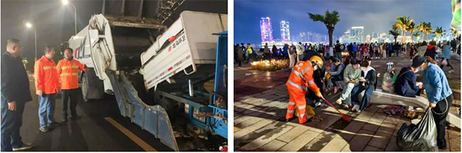 海口项目在元宵烟花晚会期间成立专项应急小组,调配多种环卫设备,采用“即时响应、分区攻坚”的模式,高效完成活动后的清理工作,迅速恢复城市面貌。