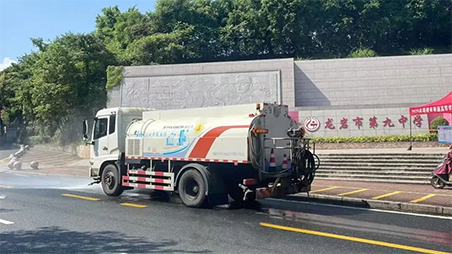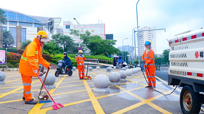 福建龙环项目公司强化保洁力量部署,考前对考场周边开展全方位深度清洁行动。调配洒水车、路面小高压等专业设备,采取人机协同作业模式,对周边人行道、公交站点、果皮箱进行精细化清洗,全力为考生打造整洁舒适的考试环境。
