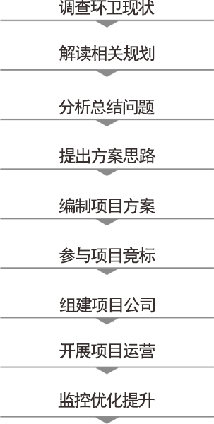 公司以政府对环卫市场化改革需求为中心,为政府提供环卫服务市场化领域内包含从前期项目咨询、设计、规划,到中期投资、制造、建设,再到后期一体化运营全过程的“一站式”服务方案。
