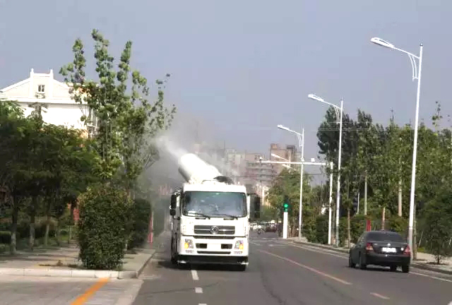 据了解,这几台治尘“神器”是为了治理道路扬尘和大气尘埃,由县财政出资、县城管局引进的。多功能抑尘车外形酷似炮筒,常被人们称为“雾炮车”。操作现场可以看到,“雾炮车”喷洒出的雾气高达20多米,射程最远达100多米。喷洒过后,空气中有细微雾状颗粒飘落,这是对大气中尘埃的净化,让人顿时感觉空气的清新。高压清洗车又称道路清洗车,该车是集道路清洗、喷雾降尘、洒水于一体的多功能环卫车,能彻底清除道路尘土、清洗路沿石,使路面见本色。