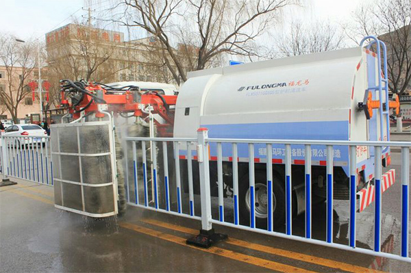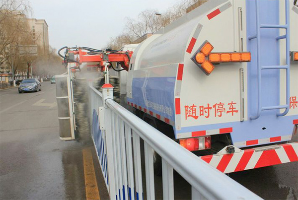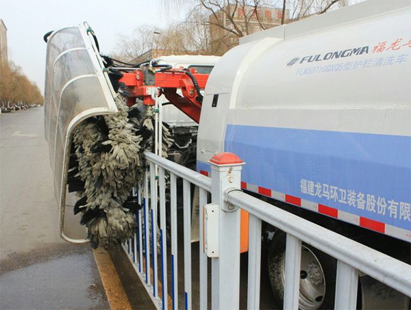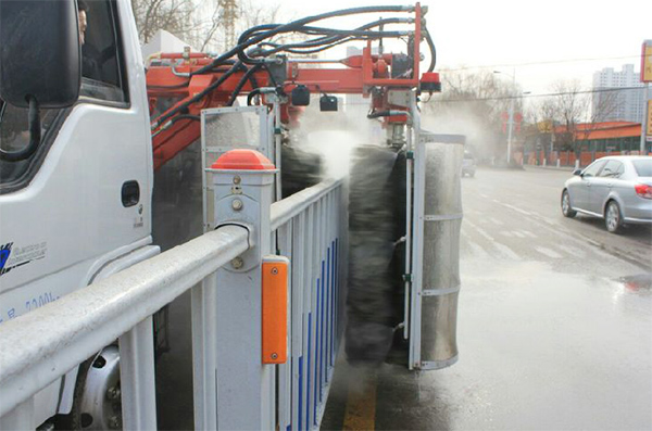 隔离栏清洗车可以清洗一米五以下的各种隔离栏,清洗车的左侧装有两对共四个滚刷,并配有高压、低压水路系统,驾驶员只要轻轻按一下按钮,水管喷嘴就会将干净水洒在滚刷上,同时,滚刷就会夹住隔离栏快速旋转起来,进行360度清洗。