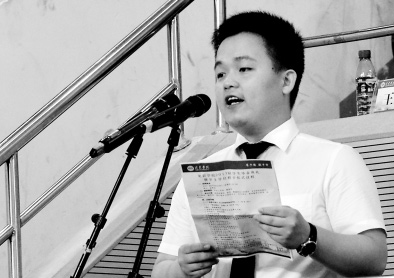 龙岩学院优秀校友林于凯在发言。 马悦 摄