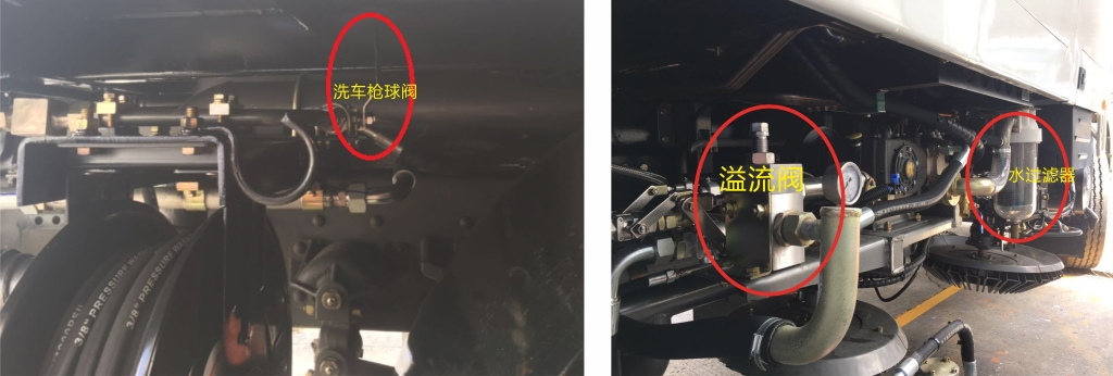 4、后部洗车枪球阀没关 4、关闭后部洗车枪球阀