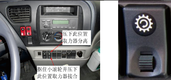 2)踩下离合器踏板,操纵取力器开关使其分离,蜂鸣器报警解除;