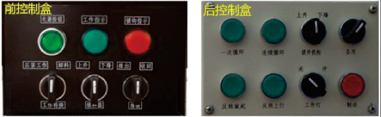 1)发动机处于怠速状态,按下前控制盒面板上的电源开关按钮接通电源,在前控制盒面板上选择“卸料”工作模式;