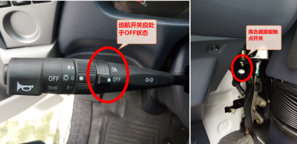 5、底盘自动巡航工作异常,检查巡航开关是否处于OFF状态或检查开关是否正常;